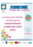 La maison des familles sera fermée du samedi 28 février au mercredi 4 mars inclus , ... - 1