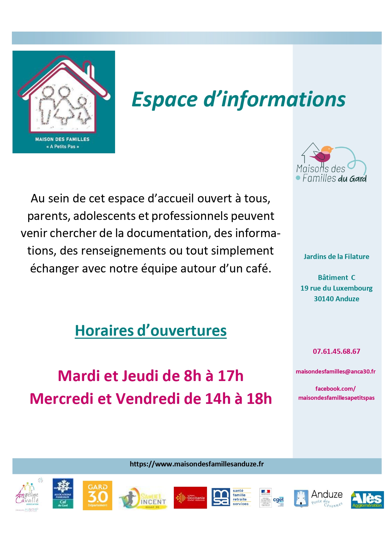 Au sein de cet espace d’accueil ouvert à tous, parents, adolescents et professionnels peuvent venir chercher de la documentation, des informations, des renseignements ou tout simplement échanger avec notre équipe autour d’un café.